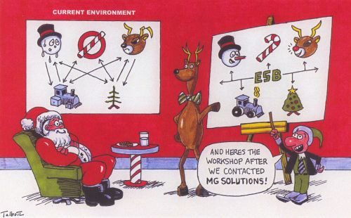 It looks like Santa got a little help this year in business integration technology from our friends at MG Solutions! This fun little sketch was on the annual MG Solutions Christmas card I received last week.