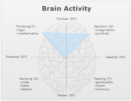 Thanks to Jeff Bohren and Pat Patterson for referring to Typealyzer, which I used to analyze this blog. Apparently, my writing style would indicate that I have a “Thinker” (INTP) personality. A brain activity diagram …