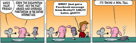 Do you suffer from the malady of Exclamation Point Excess in social media?  I do!  But  I had never realized the effect of it all on Eddie the Exclamation Point, until today …