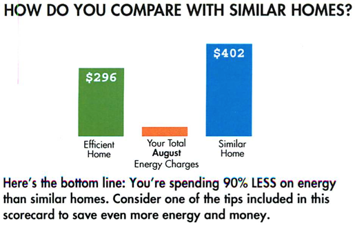 Well, if you had known the context, the report wouldn’t have looked so good. During the month of August this year, our home was being restored from a house fire. No air conditioners were running in the house during the entire month. No wonder we had a low power bill! If only we would compare so favorably now the new air conditioning units have been turned back on!