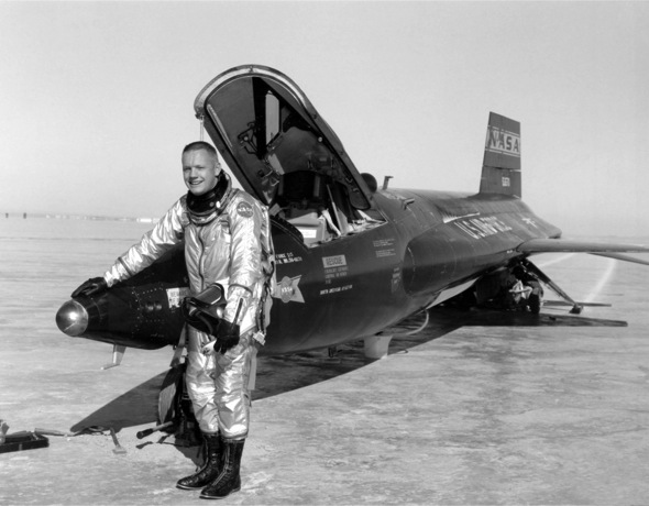 The NASA photo of the day shows Neil Armstrong with an X-15 rocket-powered airplane he test-piloted in the early 1960’s, when I was a space-loving little boy.