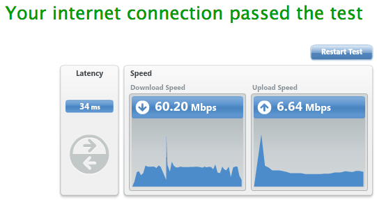 In order to register for an interesting online service this afternoon, I had to perform an Internet speed test. Â It was nice to know that we (my computer, my internet connection and I) passed quite handily!