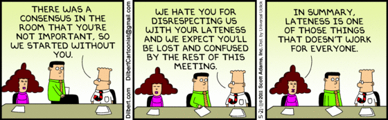 Comments Off on Dilbert and Alice on Meeting Punctuality . Permalink . Trackback URL