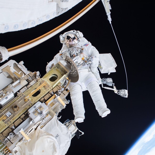 Expedition 46 Flight Engineer Tim Kopra … and Commander Scott Kelly successfully moved the International Space Station’s mobile transporter rail car ahead of Wednesday’s docking of a Russian cargo supply spacecraft.