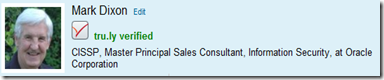 On December 10, 2009, I posted a short piece on this blog about Trufina, a company providing online identity verification services. Â For a long time, I had a visible Trufina badge on the blog, so someone could click on it to verify that I was, indeed, the very Mark Dixon I claimed to be. Â Since no one expressed interest, I took the badge off my main page.